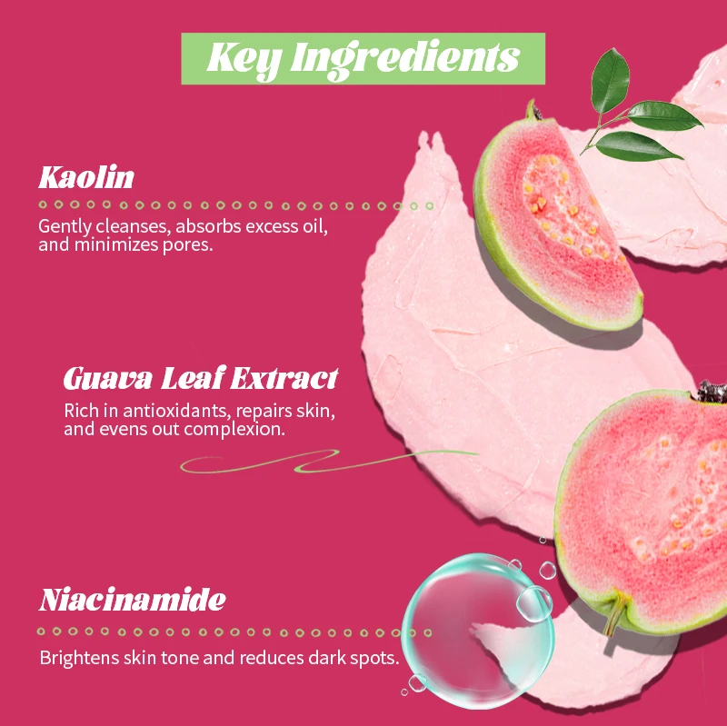 Factory Direct Pink Clay Whitening Face Mask with Guava & Vitamin C Hydrating Pore Minimizing & Dark Spot Reducing